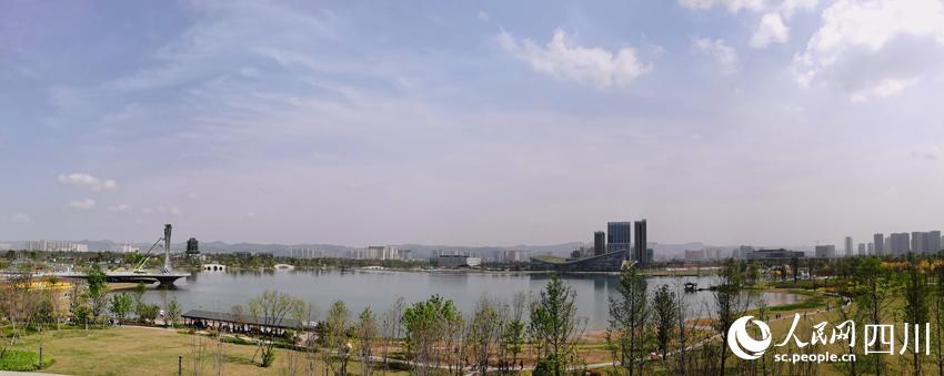 “公園大體分為東區和西區,東區是體育主題,西區是園林主題。”五冶集團工作人員袁精國介紹,公園占地5000多畝,包含了“一湖、一環、七島、十二景”等諸多看點。其中,“一湖”是東安湖,“一環”是環湖綠道。