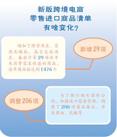“新版清單增加了番茄汁、家用洗碟機等29項商品稅目,以及貓砂、足貼等產品,體現了清單內容的民生指向。”中國政法大學民商經濟法學院講師鄭伊說,“這些都是近年來消費需求旺盛的日常用品,納入清單之后,百姓可以通過跨境電商購買相關進口產品,價格也會相應地有所下降,有利于滿足消費升級需求。”