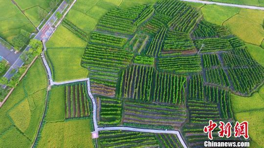 2019年8月24日,航拍江西省安遠縣鳳山鄉東河村進入采收季的紫山藥基地。 (資料圖) 王劍 攝