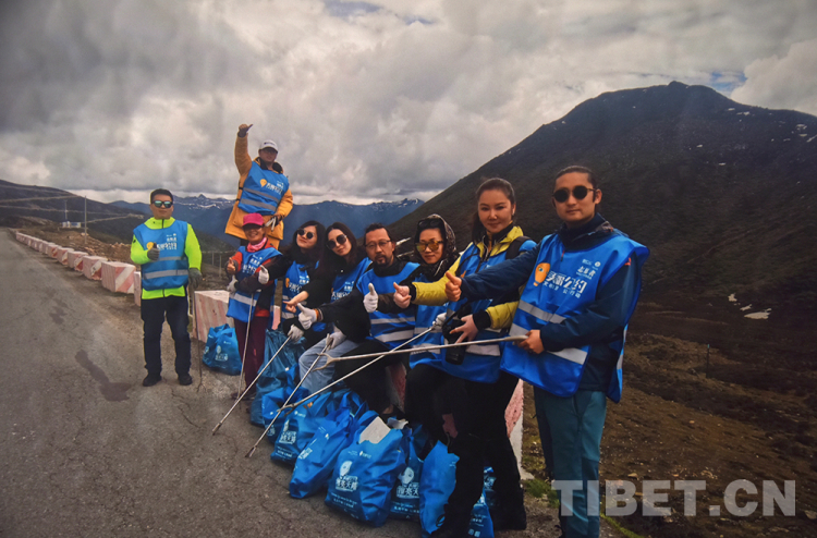 圖為“美麗公約擦亮天路”公益活動志愿者在西藏自治區開展撿拾垃圾活動 (資料圖) 翻拍:王媛媛