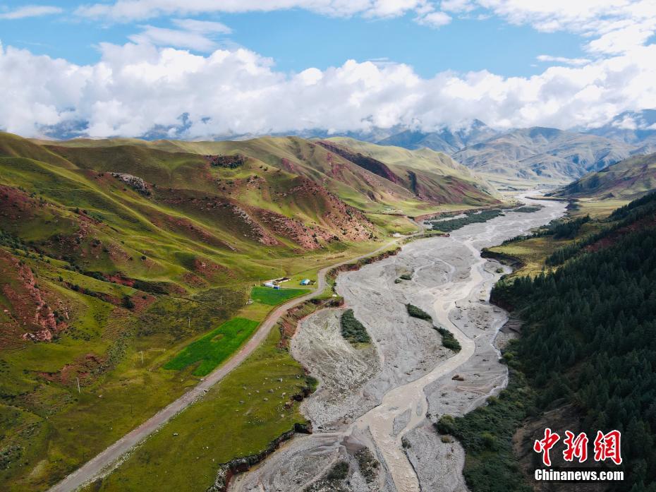 9月9日,航拍祁連山國家公園青海片區油葫蘆自然風景區美景。初秋時節,祁連山國家公園青海片區草地漸黃,天高云淡,勾勒出一幅色彩斑斕的秋日美景圖。中新社記者 李江寧 攝